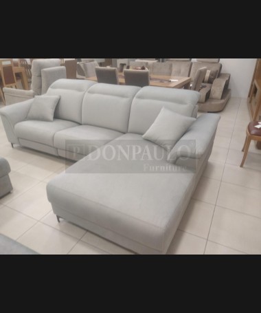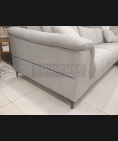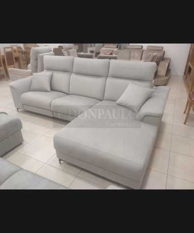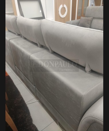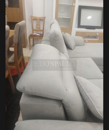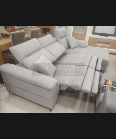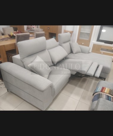 - Chaisselonge modelo Ipanema ESO0066, de estilo moderno hecho a medida, tapizado en tela de microfibras gris de fácil limpieza, referencia Lima 13, con asientos de viscolatex. Las dos plazas con reláx eléctrico y patas altas. De L270 x F98 x A100 cm (altura con respaldo bajado 85 cm), con chaisselonge de F173 cm