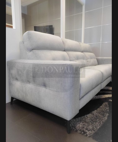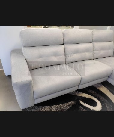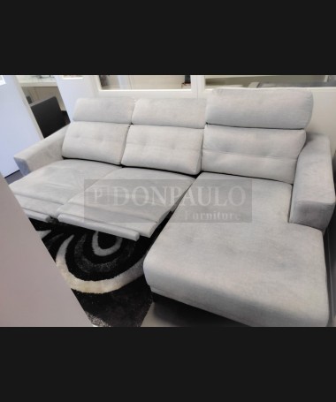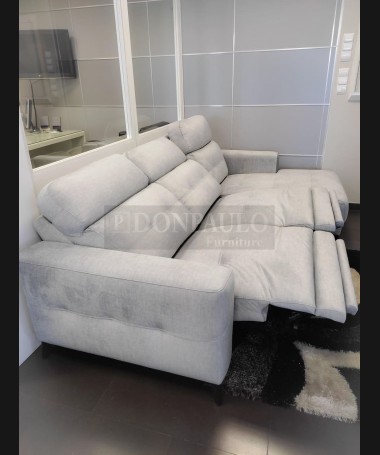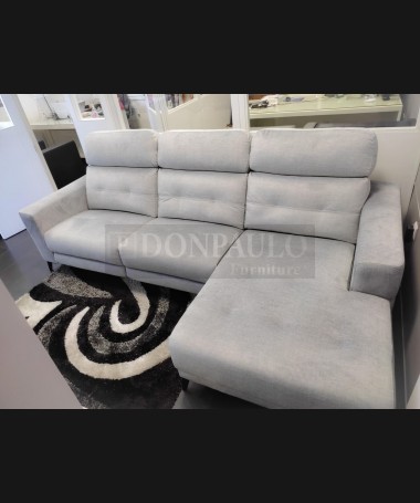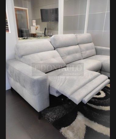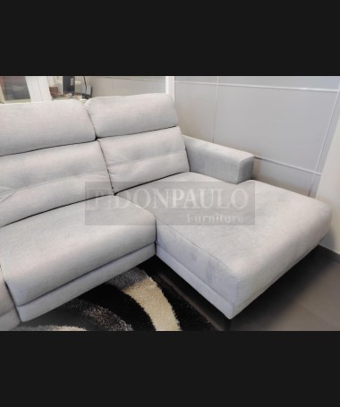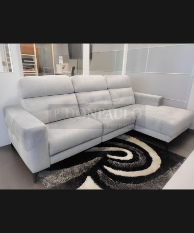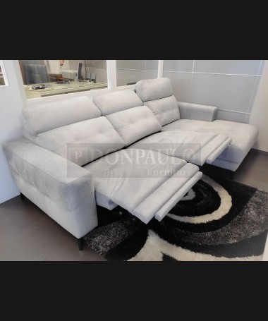 - Chaisselonge modelo Dolly ESO0067, de estilo moderno hecho a medida, tapizado en tela de fácil limpieza gris, con asientos de viscolatex, dos asientos con motor relax, y patas metálicas altas negras. De L275 x F100 x A100 cm, con chaisselonge de L160 cm