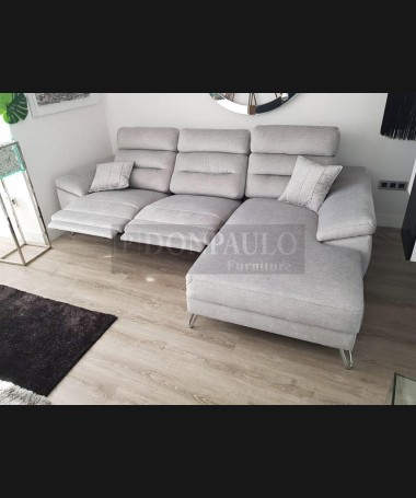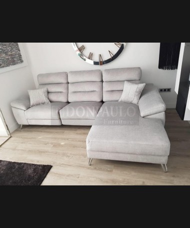 - Chaisselonge modelo Primavera TSO0068, de estilo moderno hecho a medida. Con asientos de viscolatex, tapizado en tela de microfibras de fácil limpieza, Dos plazas con relax eléctrico y patas altas