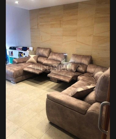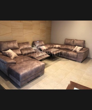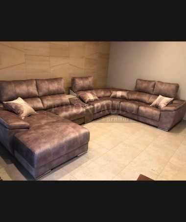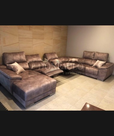 - Rinconera modelo Lisboa TSO0071, de estilo moderno hecho a medida, con los asientos de viscolatex, dos plazas con relax eléctricas, tapizado en tela de microbibras de fácil limpieza, módulo central con dos posavasos, lámpara led, cargador para el móvil y cajón revistero. Con arcón en el brazo del chaisselonge