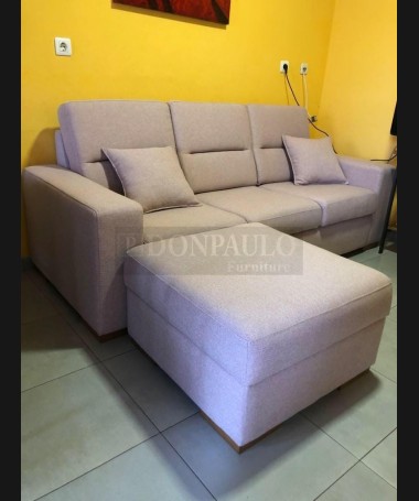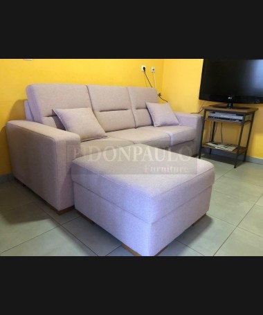 - Sofá con puff modelo TSO0074, de estilo moderno hecho a medida, tapizado en tela de fácil limpieza gris