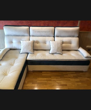 - Chaisselonge modelo TSO0077, de estilo moderno hecho a medida, con los asientos de viscolatex, y tapizado en tela de fácil limpieza blanca y negra
