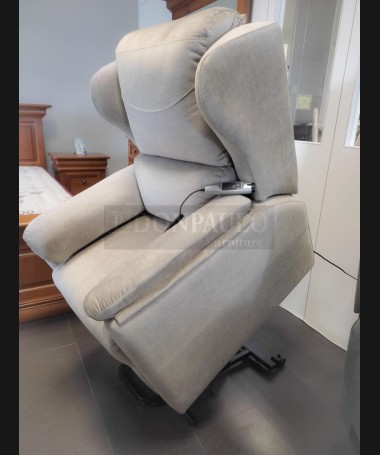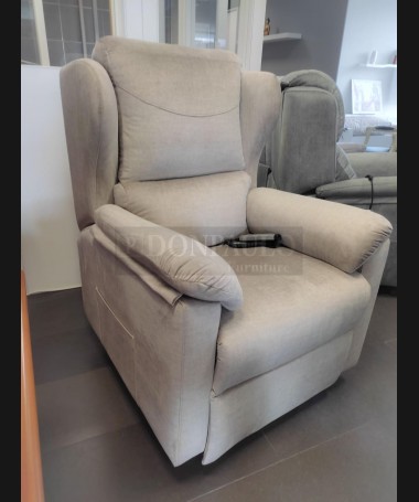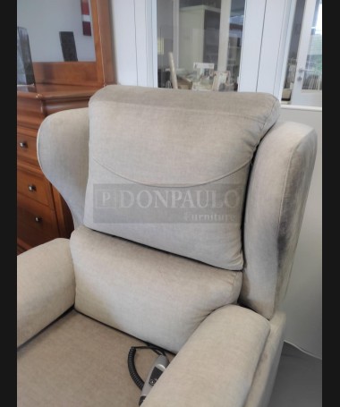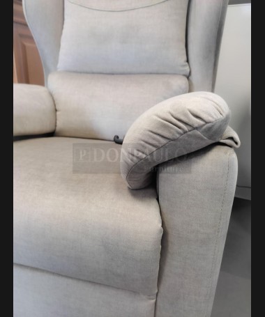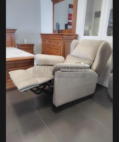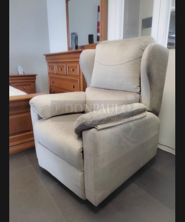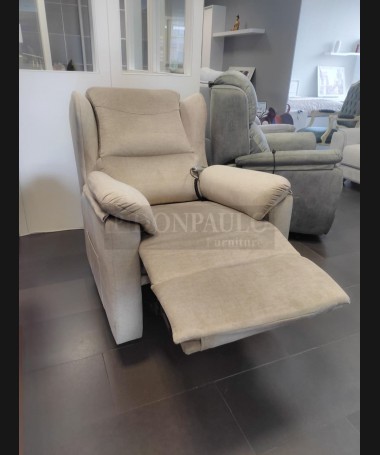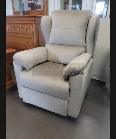 - Sillón relax modelo Guadalquivir ESO0082, de estilo moderno, tapizado en tela de microfibras de fácil limpieza referencia Ramses 3 beige, dispone de sistema relax con un motor, mando y sistema elevador. De L76 x F82 cerrado y F160 cm abierto x A107 cm