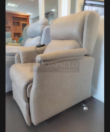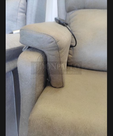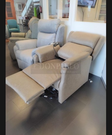 - Sillón relax modelo Cáceres ESO0084, de estilo moderno, tapizado en tela de microfibras de fácil limpieza ref. Arte elephant, con dispositivo relax de dos motores y sistema elevador. De L88 x F88 cerrado y F168 abierto x A109 cm