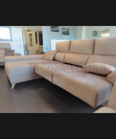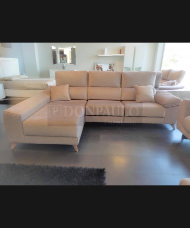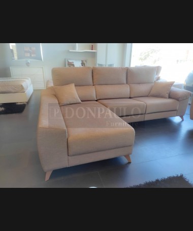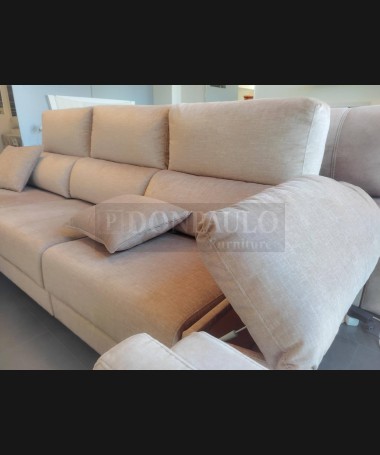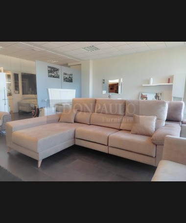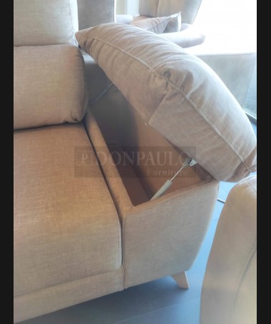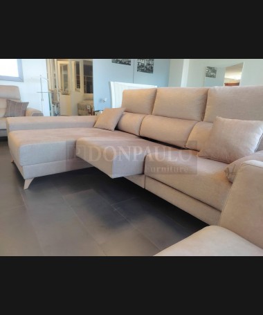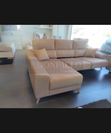 - Chaisselonge modelo ESO0089, de estilo moderno hecho a medida, con asientos de viscolatex extraíbles, con arcón en el reposabrazos, las patas altas de madera. Tapizado en tela de microfibras de fácil limpieza referencia Enma 11. De L280 x F100 x A100 cm, con chaisselonge de F180 cm