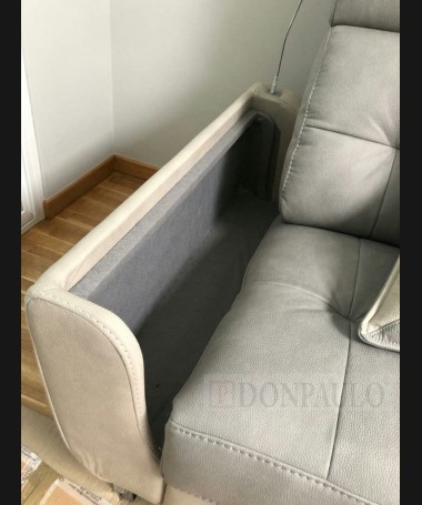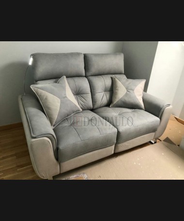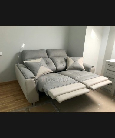 - Sofá modelo León TSO0088, de dos plazas de estilo moderno hecho a medida, con asientos de viscolatex con relax eléctrico, tapizado en tela de fácil limpieza, con cargador para el móvil y lámpara led