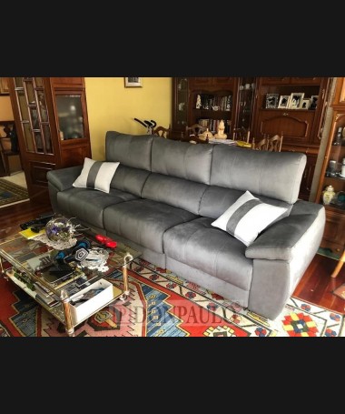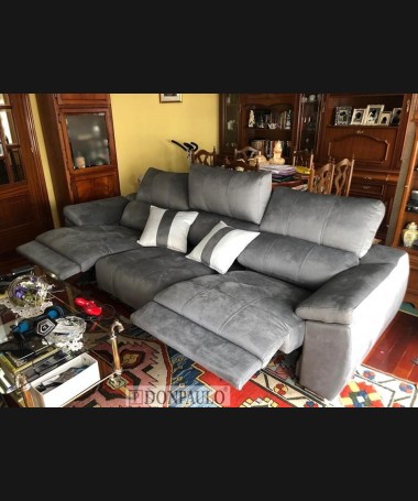 -Sofá de 3 plazas modelo Lisboa TSO0098, de estilo moderno hecho a medida, tapizado en tela de microfibras gris de fácil limpieza, con asientos de viscolatex y dos plazas con motor relax.