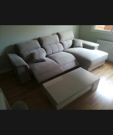 - Chaisselonge modelo Lima TSO0107, de estilo moderno hecho a medida, con asientos de viscolatex con dos relax eléctricos, tapizado en tela de microfibras de fácil limpieza.