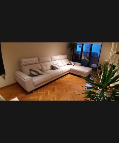 - Chaisselonge modelo León TSO0108, de estilo moderno hecho a medida, con asientos de viscolatex, tapizado en tela de microfibras de fácil limpieza.