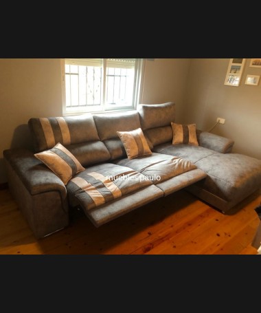 -Chaisselonge modelo TSO0006, tapizado en tela de microfibras de fácil limpieza, con asientos de núcleo HR y capa de viscolatex, con dos asientos relax a motor