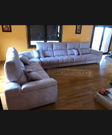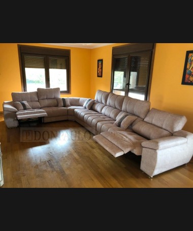 - Rinconera modelo Lisboa TSO0028, hecha a medida, con dos asientos relax a motor, con asiento de núcleo HR y capa de viscolatex por encima, tapizado en tela de microfibras de fácil limpieza de color gris