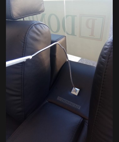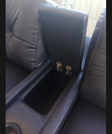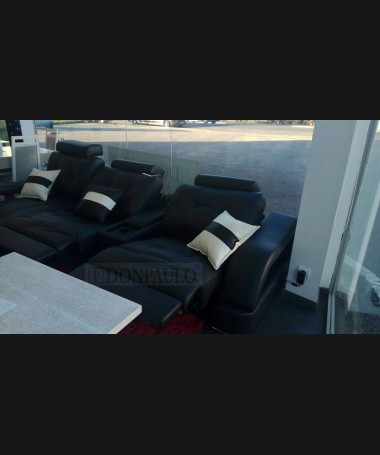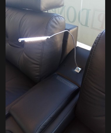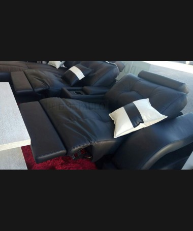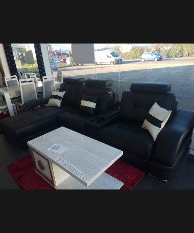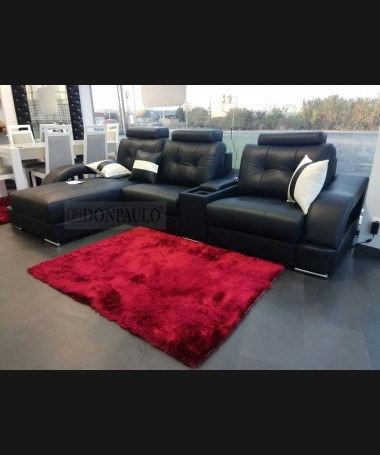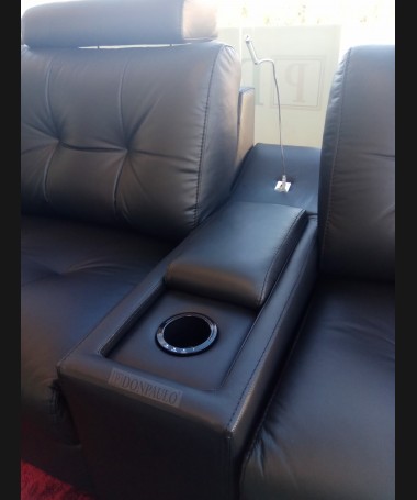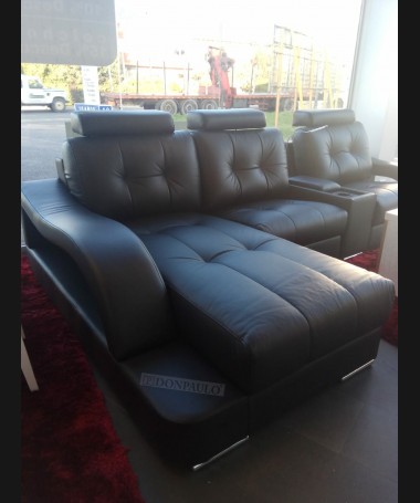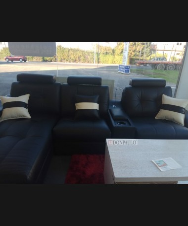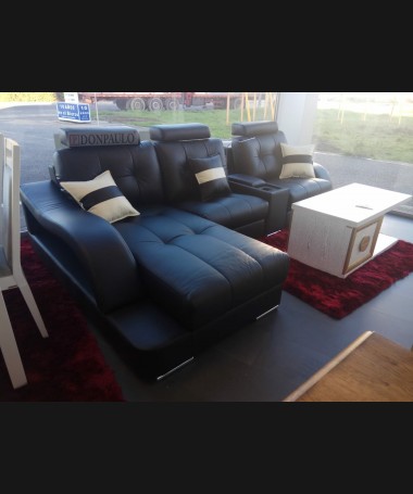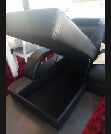 - Chaisselonge modelo Ambar ESO0020, tapizado en piel espesorada negra, con asientos de viscolatex, 2 asientos con motor eléctrico, cargador para el móvil, lámpara led, arcón en el chaisselonge y un pequeño arcón en el módulo posavasos con nevera incorporada, de L320 x F105 x A97 cm con chaisselonge de F185 cm