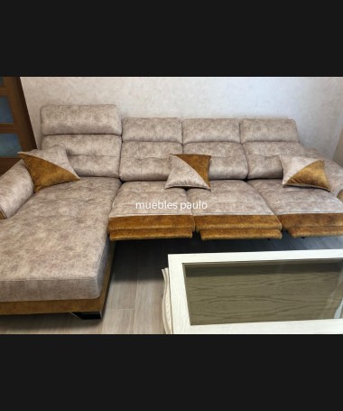 - Chaisselonge modelo león TSO0009, tapizado en tela de microfibras de fácil limpieza, con asientos de núcleo HR con capa de viscolatex, y dos asientos relax eléctricos