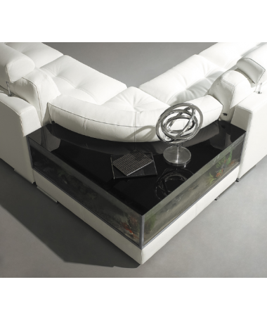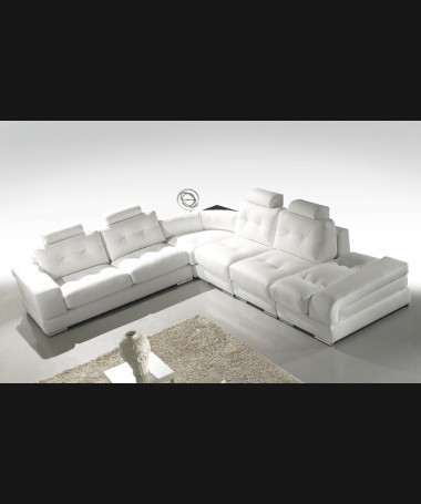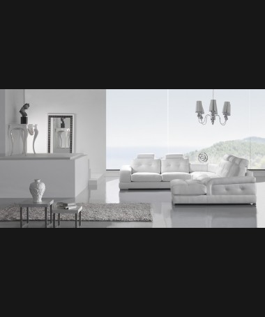- Rinconera modelo PSO0024, de estilo moderno hecho a medida, con o sin chaisselonge, con la rinconera de cristal, tapizado en piel blanca