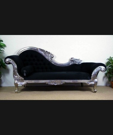 - Diván modelo PSO0030, de estilo clásico hecho a medida, en madera tallada plateada y tapizado en terciopelo negro