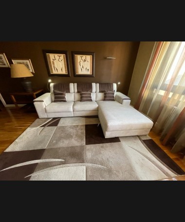 - Chaisselonge modelo TSO0121, de estilo moderno hecho a medida, tapizado en tela de microfibras de fácil limpieza color beige y con detalles marrones.