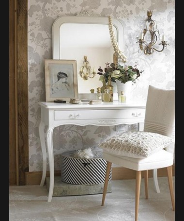 - Tocador modelo PTO0001, de estilo clásico hecho a medida, lacado en blanco con espejo a juego, con espejo y banqueta a juego