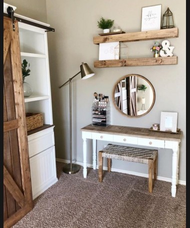 - Tocador modelo PTO0011, de estilo clásico hecho a medida, en lacado blanco y madera envejecida, con espejo, banqueta y estanterías a juego. De 3 cajones