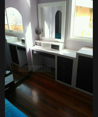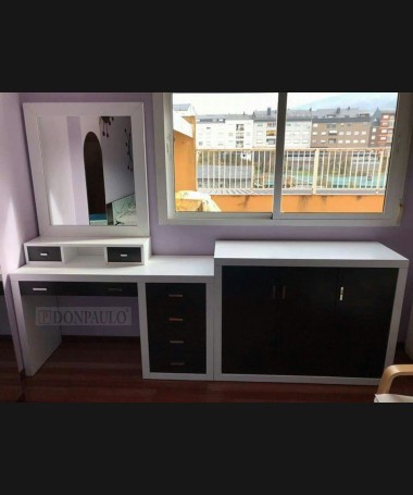 - Tocador modelo TTO0007, en madera, en acabado decapé blanco y negro con espejo