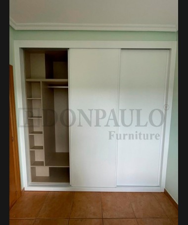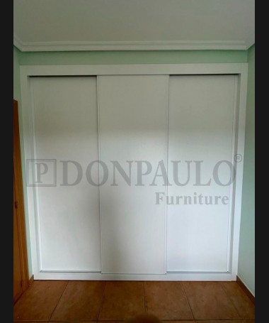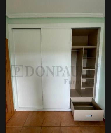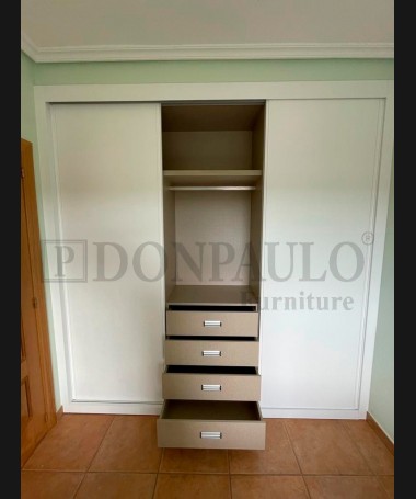 - Armario modelo TAR0125, de estilo moderno hecho a medida, en acabado blanco con el interior de melamina textil con la distribución personalizada