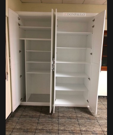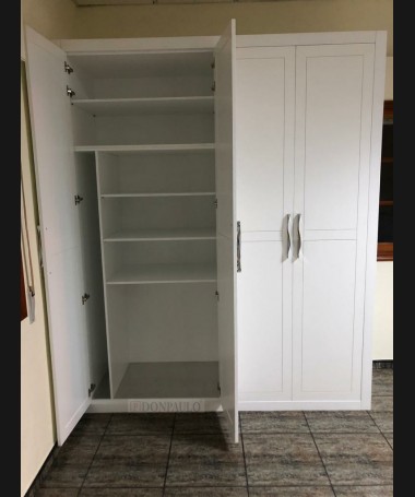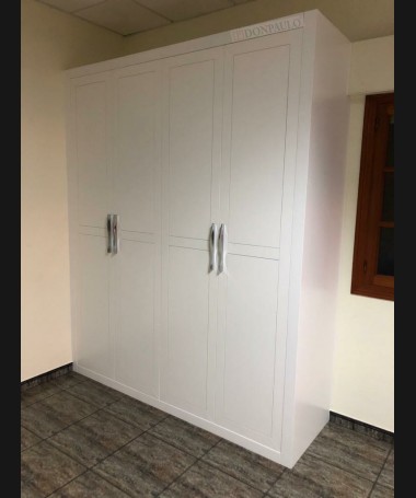 - Armario modelo TAR0130, de estilo moderno hecho a medida, en madera en acabado decapado blanco, con puertas de apertura, y el interior a juego con la distribución personalizada