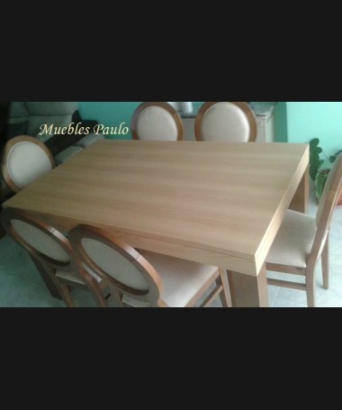- Comedor modelo TCO0065, de estilo moderno hecho a medida, en madera de castaño, compuesto por mesa de comedor extensible y 6 sillas tapizadas en tela de fácil limpieza
