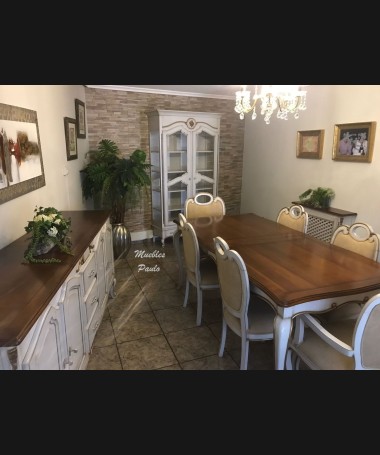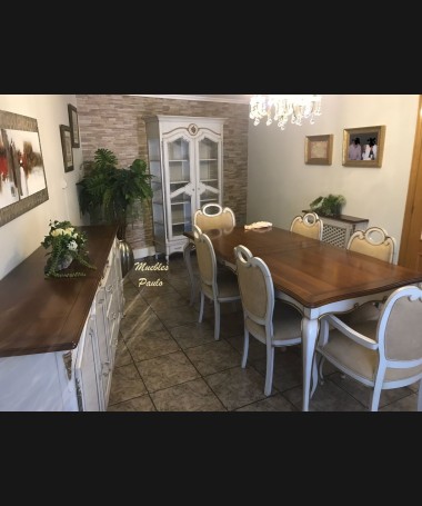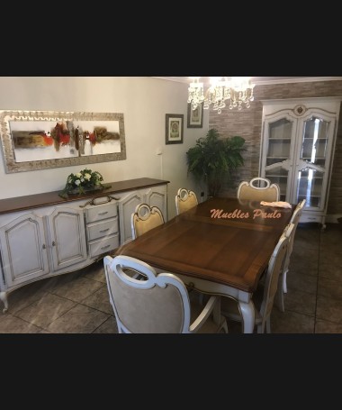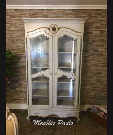 - Vitrina modelo TAL0047, de estilo clásico hecha a medida, fabricada en madera de cerezo en acabado efecto anticuario en acabado blanco roto con detalles dorados