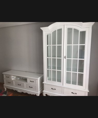 - Vitrina modelo TAL0048, de estilo clásico hecha a medida, en acabado blanco