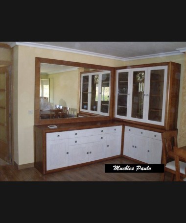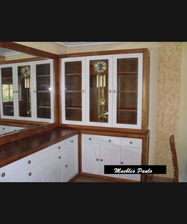 - Vitrina con reloj modelo TAL0066, de estilo clásico hecha a medida, en madera de castaño en color am con los frentes en color blanco