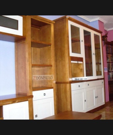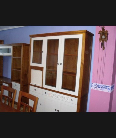 - Alacena modelo TAL0068, de estilo clásico hecha a medida, fabricado en madera de castaño en acabado color am, con los frentes en decapé blanco