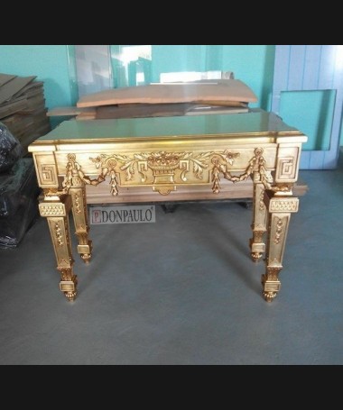 - Consola modelo TAP0073, de estilo clásico hecha a medida, en acabado pan dorado y tallada