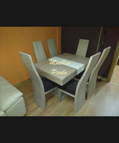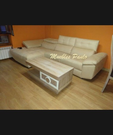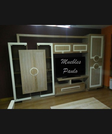 - Salón modelo TSA0067, de estilo moderno a medida, en madera en color roble blanqueado, con detalles decapados en blanco