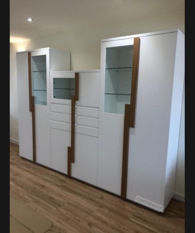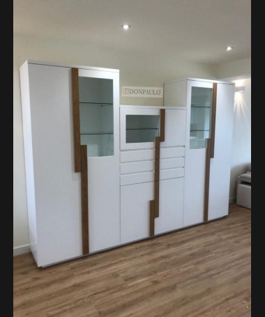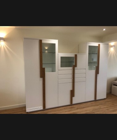 -Salón modelo TSA0072, de estilo moderno hecho a medida, lacado en blanco mate, con detalles en los tiradores de madera