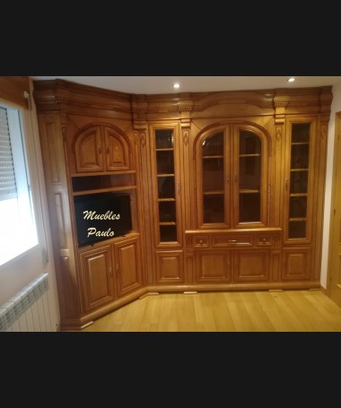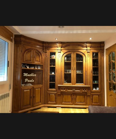 - Salón modelo Sobreira TSA0075, de estilo clásico hecho a medida, fabricado en madera de castaño 100% maciza y tallada, con la mesa de centro a juego