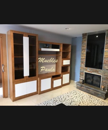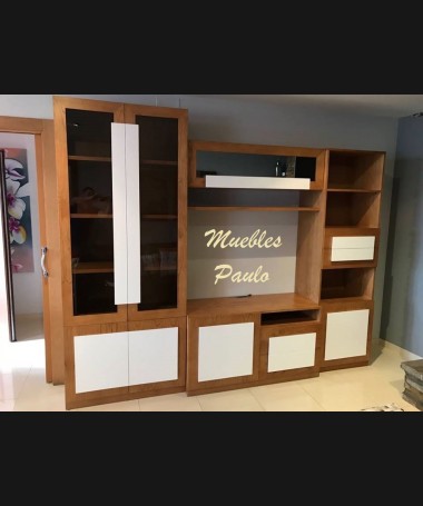- Salón modelo TSA0077, de estilo moderno hecho a medida, en acabado nogal y los frentes lacados en blanco mate