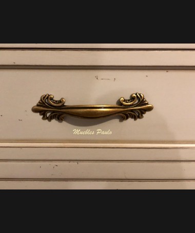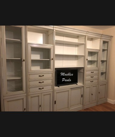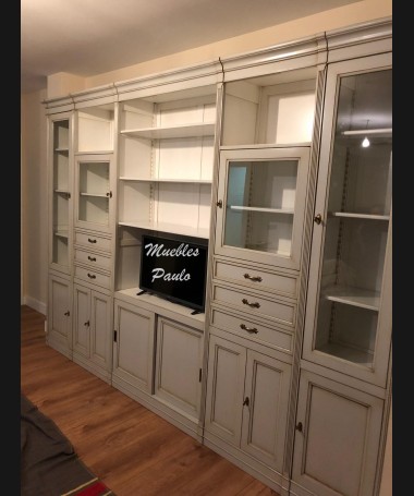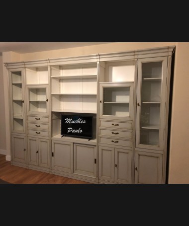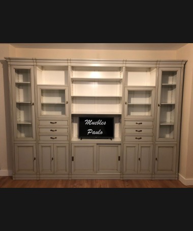 - Salón modelo TSA0078, de estilo clásico hecho a medida, en madera en acabado efecto anticuario gris y blanco roto