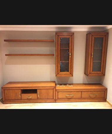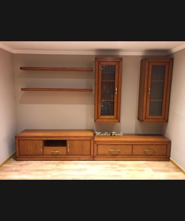 - Salón modelo SA0082, de estilo moderno hecho a medida, en madera de castaño en color cerezo
