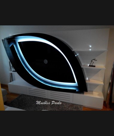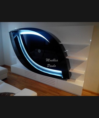 - Salón modelo TSA0087, de estilo moderno hecho a medida, fabricado en dm hidrófugo lacado en alto brillo blanco y negro, con luces led