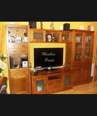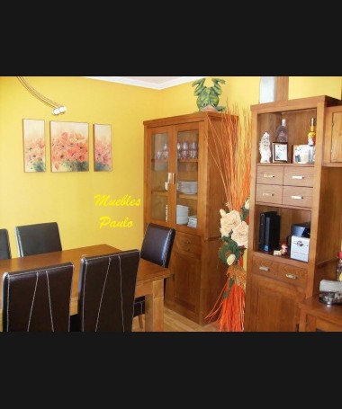 - Salón modelo TSA0088, de estilo clásico hecho a medida, fabricado en madera de castaño en color am con el comedor a juego