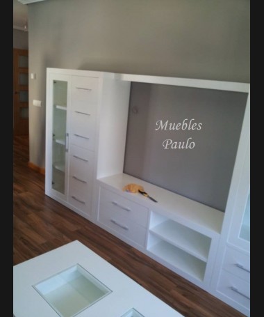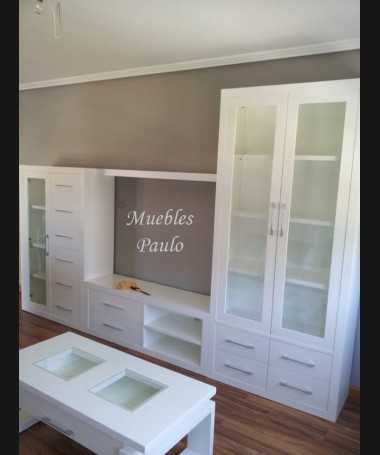 - Salón modelo TSA0089, de estilo moderno hecho a medida, fabricado en madera en acabado decapado blanco