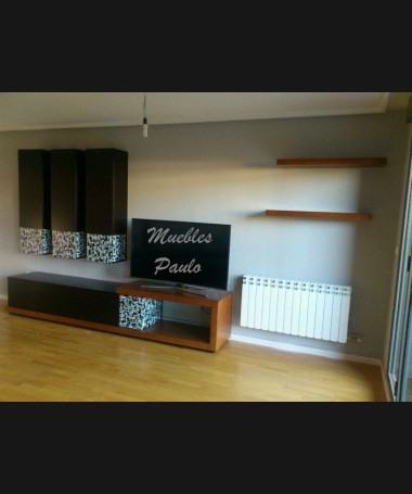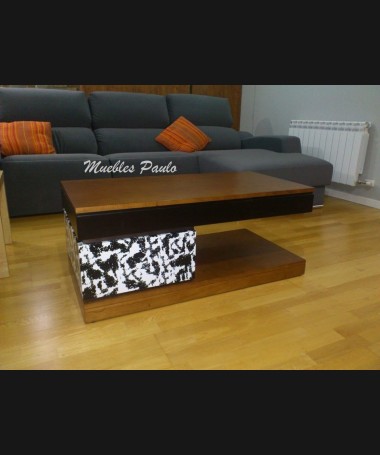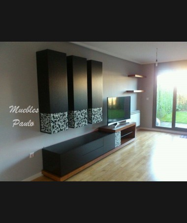 - Salón modelo TSA0095, de estilo moderno hecho a medida, en madera en acabado decapado negro, con detalles color madera y fantasía