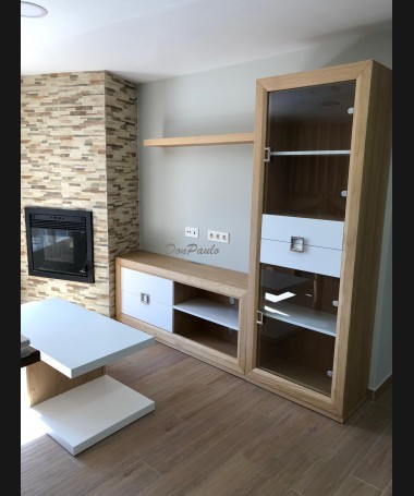 - Salón modelo TSA0103, de estilo moderno hecho a medida, en madera de castaño y decapado blanco